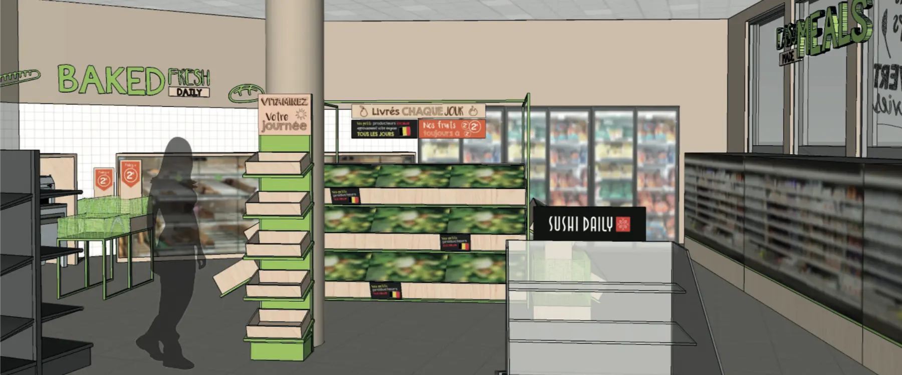 We were asked to prepare a concept book in view of a nationwide roll-out, using a store located in Waterloo as the pilot. Our scope would however stop at this initial concept proposal as due to budget constraints, Carrefour would then utilise its own teams to prepare the more detailed documentation and oversee implementation.