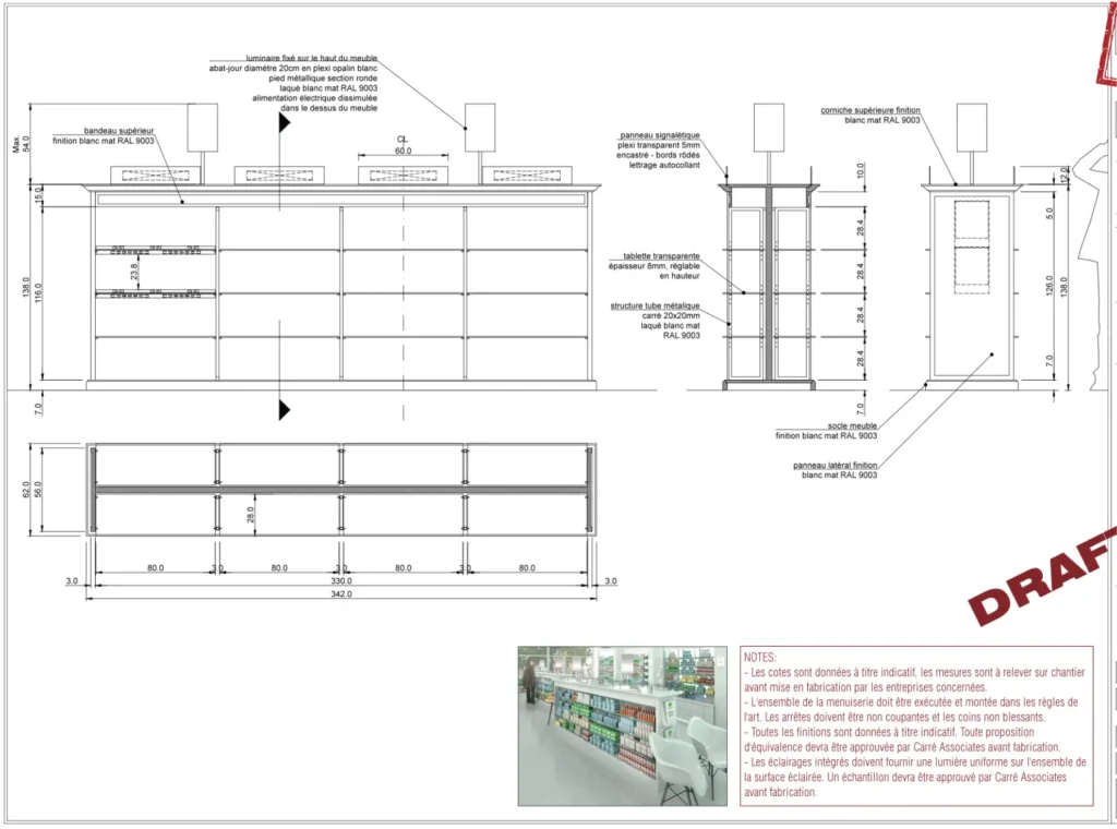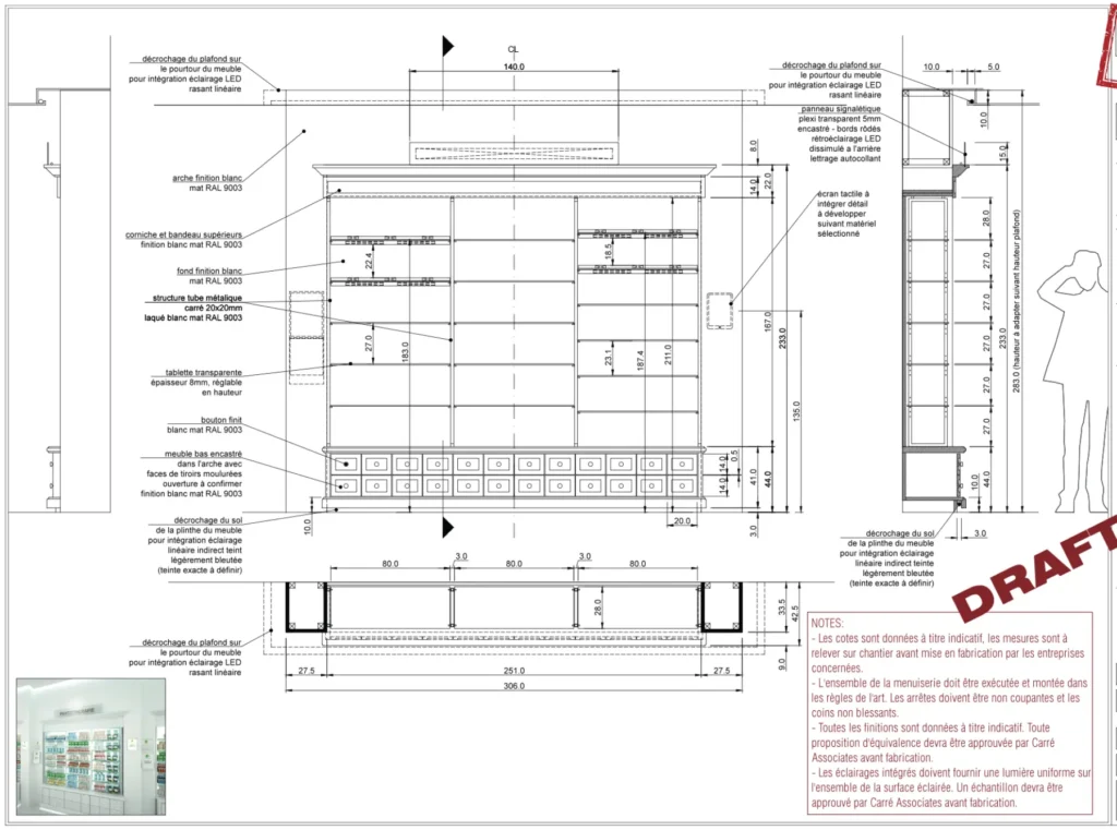 Using this feedback, I developed a set of standard construction drawings. For the following year, I personally assisted the client in the implementation of another four locations. For each, I drafted a floor implementation plan as well as liaised with our visualiser to prepare renderings of the inside and outside of the store. This was used for sign-off with the client’s main office, each store’s team as well as the relevant city authorities.