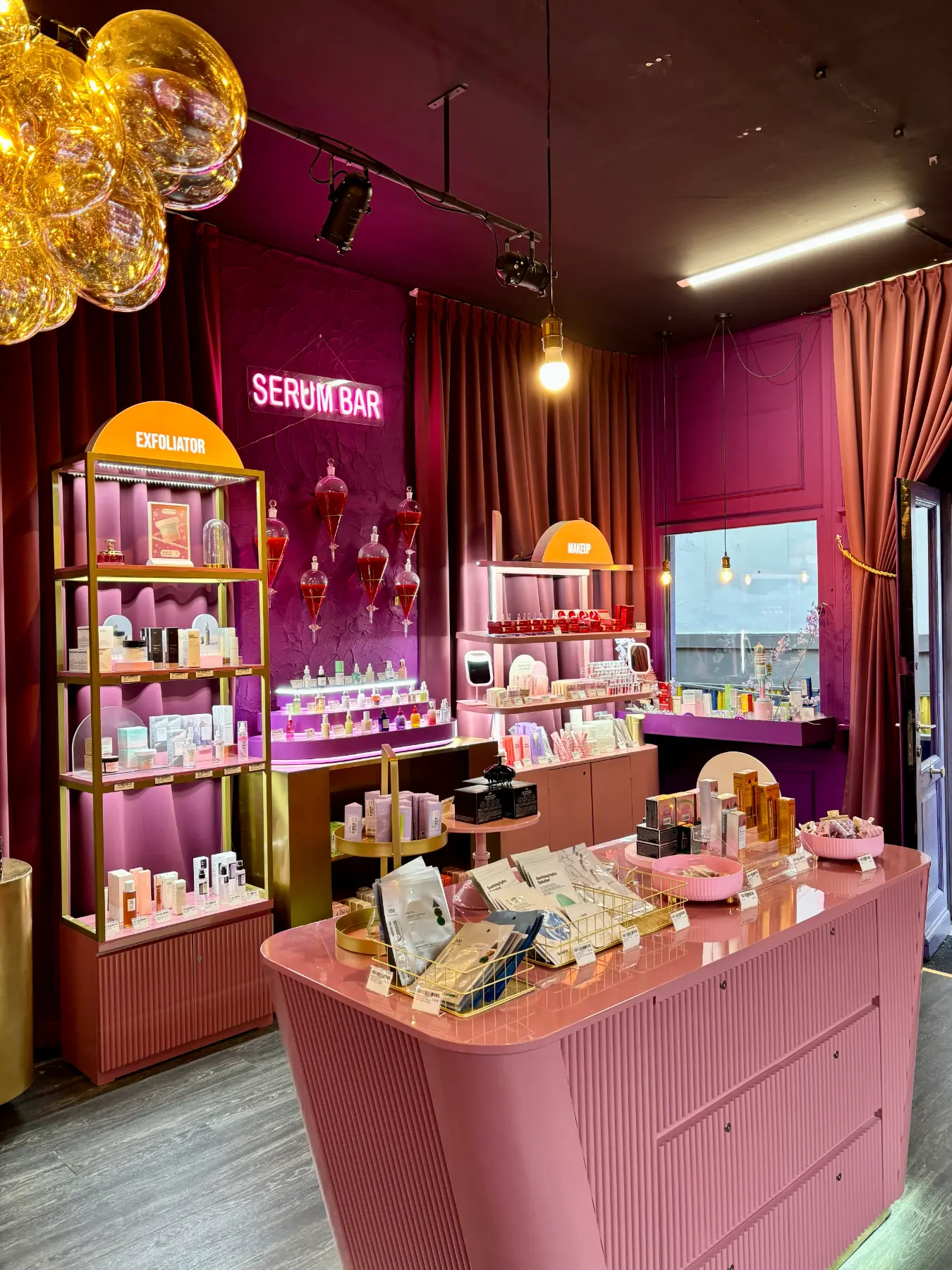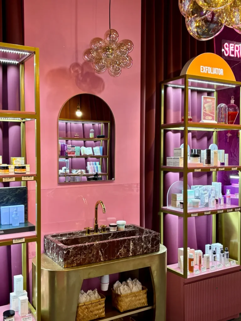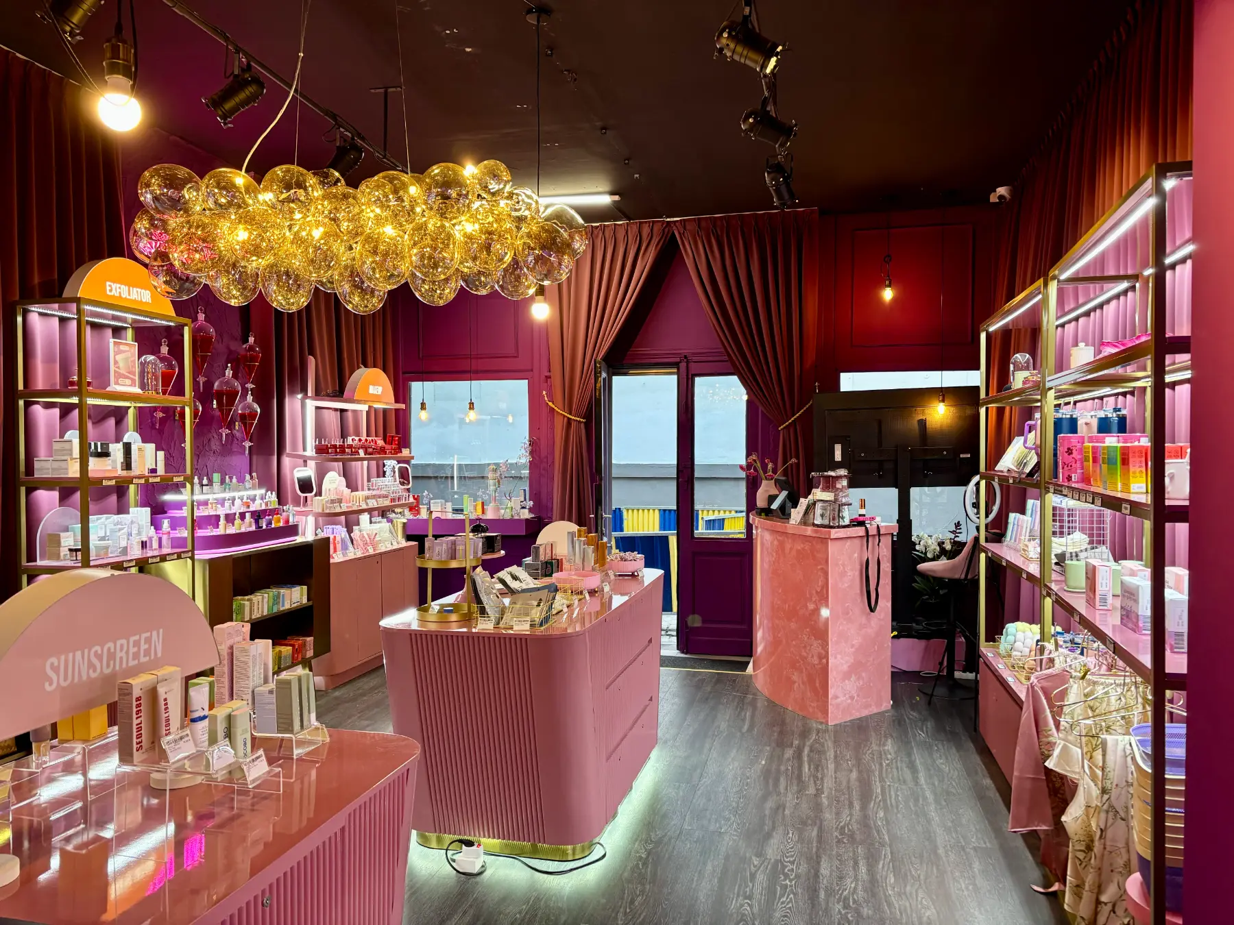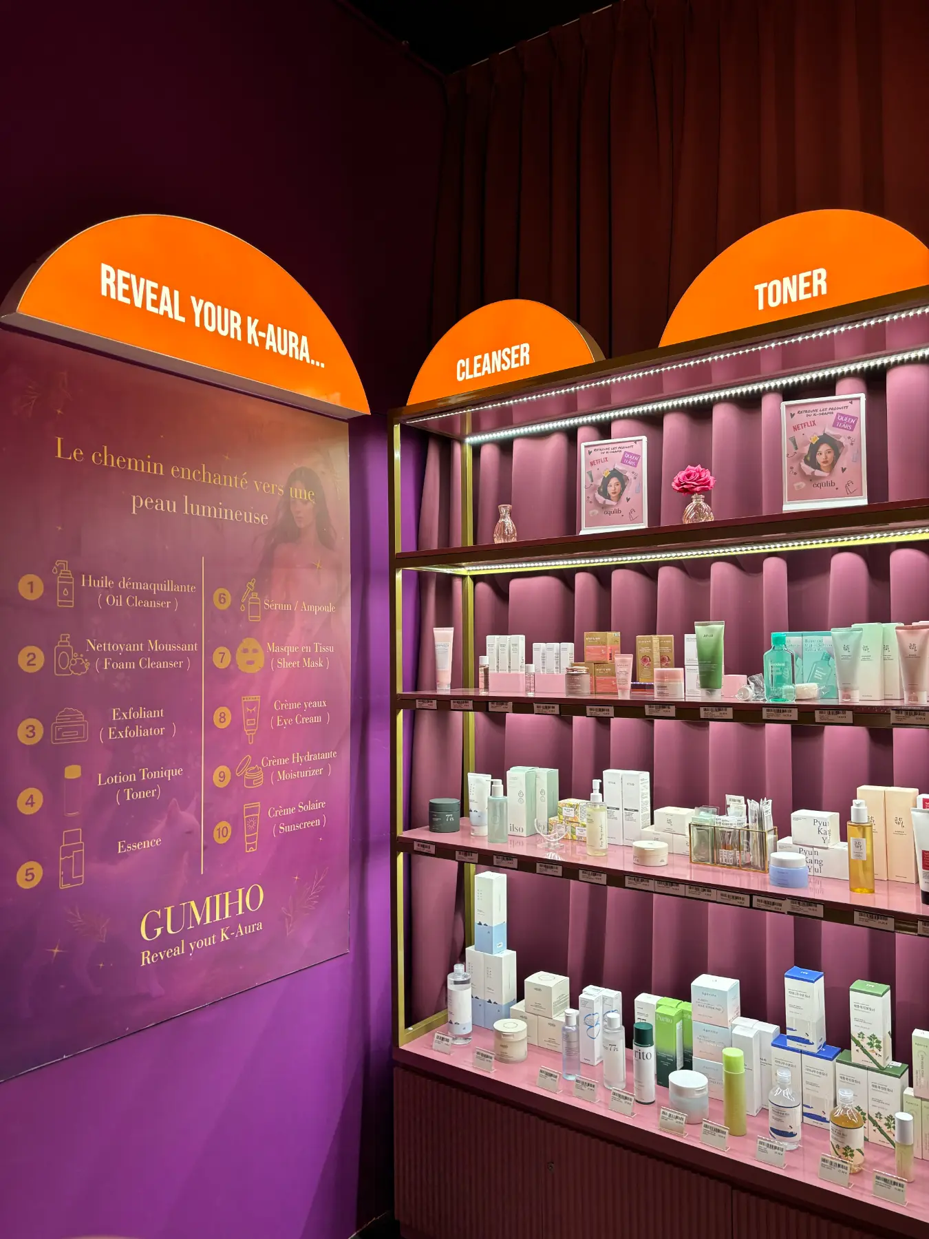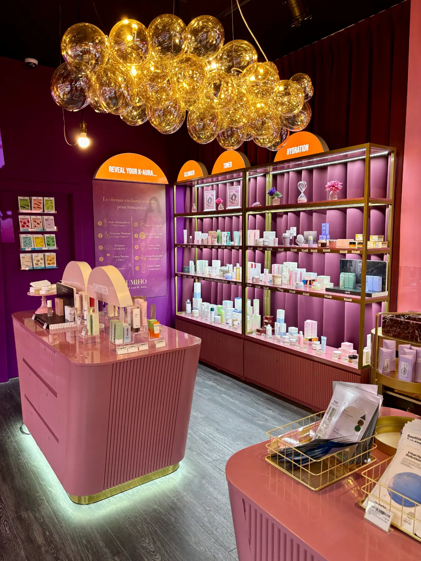 She had already defined a very clear offer focusing on the K-beauty ritual, complemented with gifts, food and drink, and had worked hard on an initial brand identity scheme anchored in soft refinement and mysticism. Additionally, she had also reflected on the intended store experience and designed herself a couple of AI renders of this one.